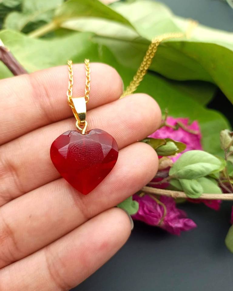 Lab Grown Heart Ruby Pendant with Gold Polished Chain Luxury Jewelry for Women Ruby Heart Pendant Necklace with Gold Polished