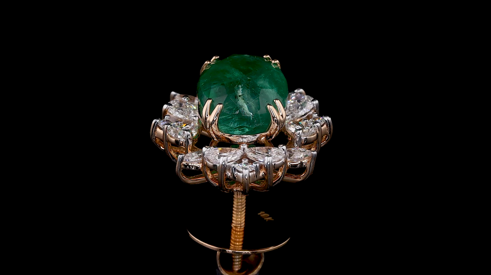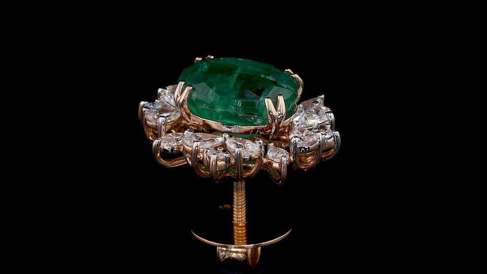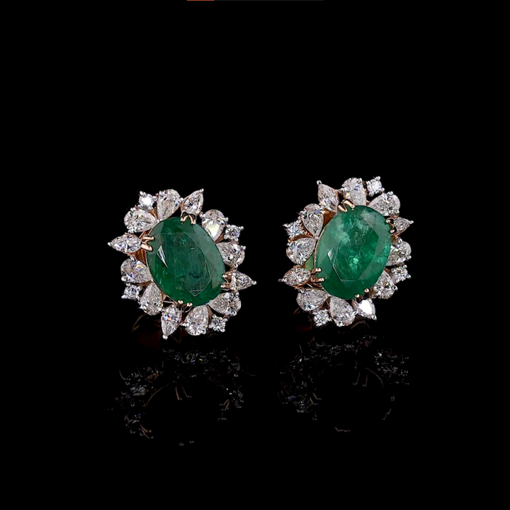 Lab Grown Oval Green Emerald Diamond Halo Stud Earrings Lab Grown Marquise Pear | Indian earrings for Party