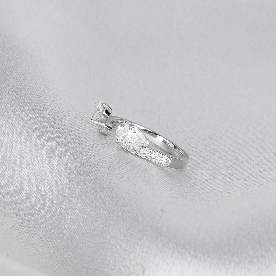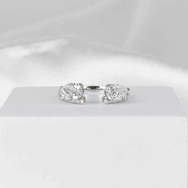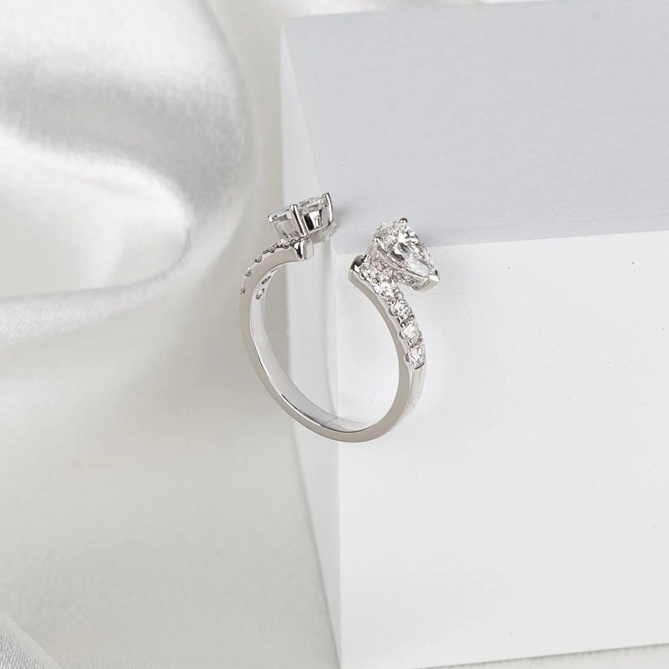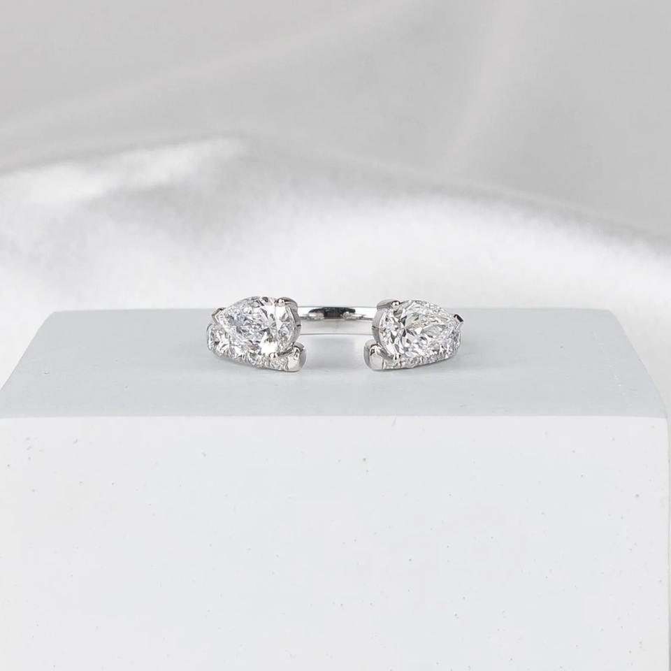 Lab Grown Pear Diamond Open Cuff Ring U Prong Pave White Gold Wedding Band for Women Adjustable Statement Jewelry