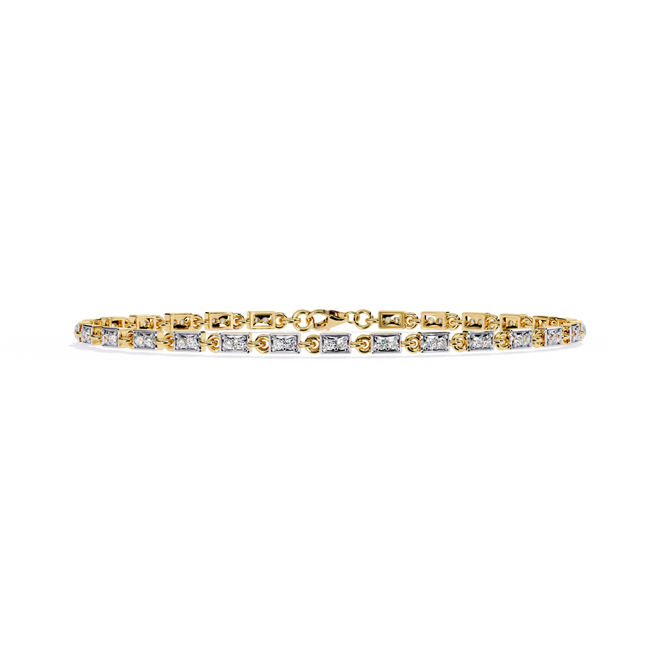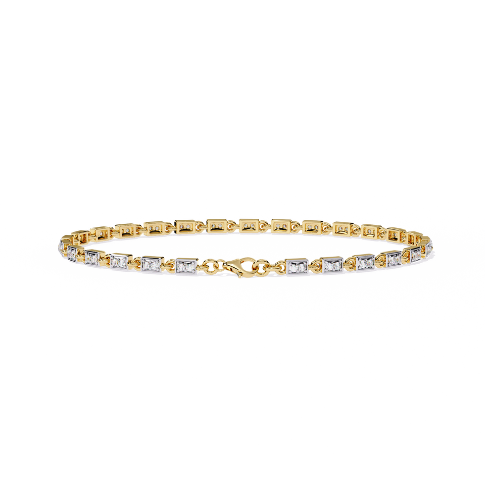Lab Grown Princess Cut Bezel Set Two Tone Diamond Tennis Bracelet in 14K Gold | Geometric Minimalist Designer Diamond Jewellery