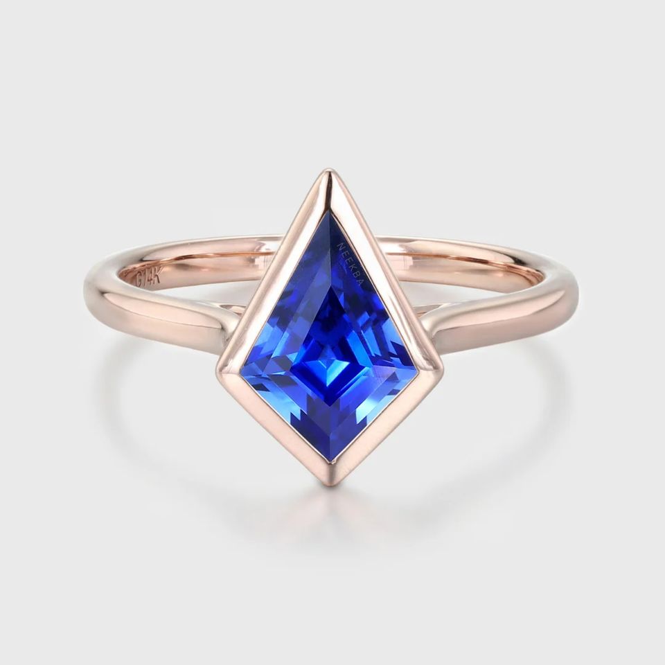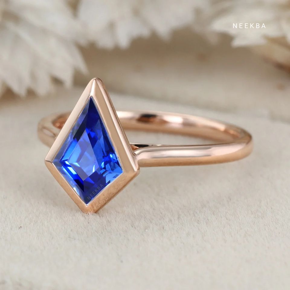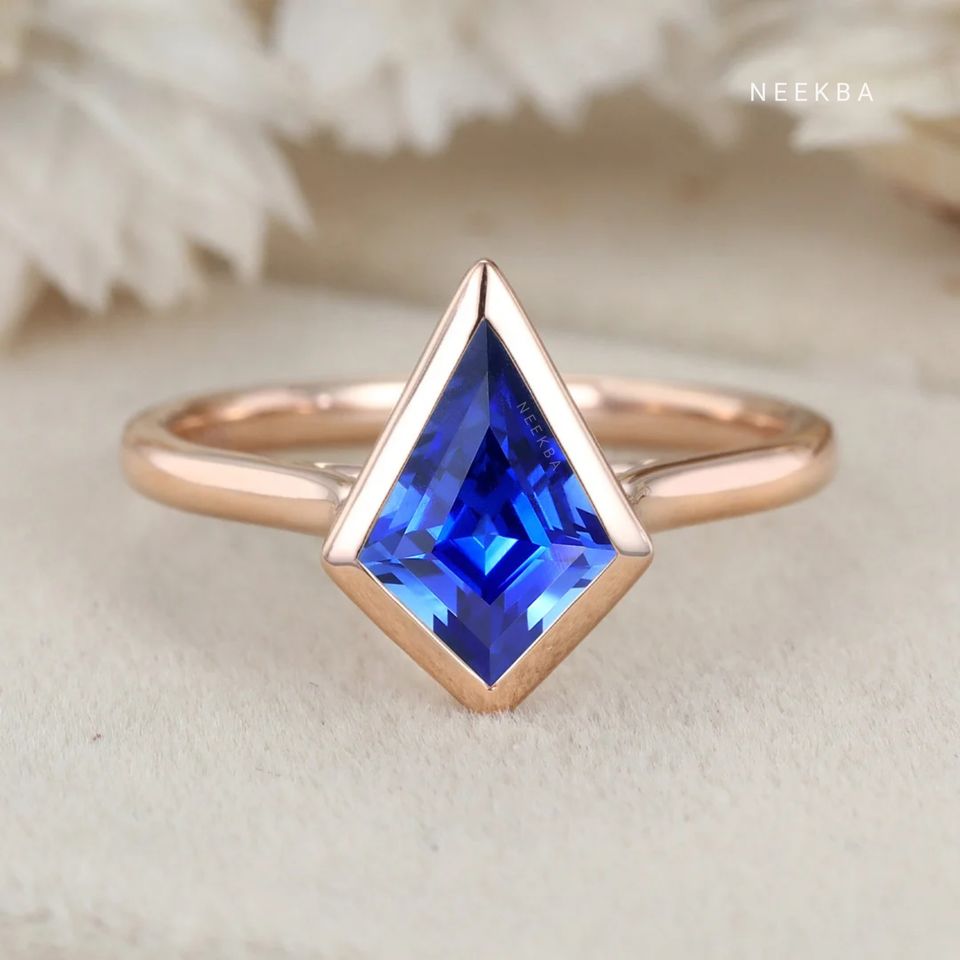 Lab-Grown Sapphire 925 Silver Ring Art Deco Style Bezel Set 10*7 mm Kite Shape Engagement Ring with Gemstone Replacement Option