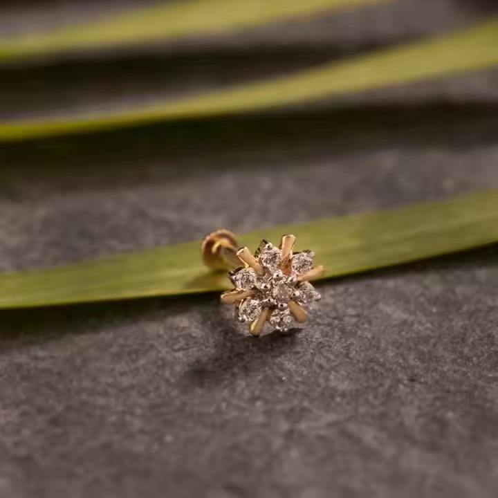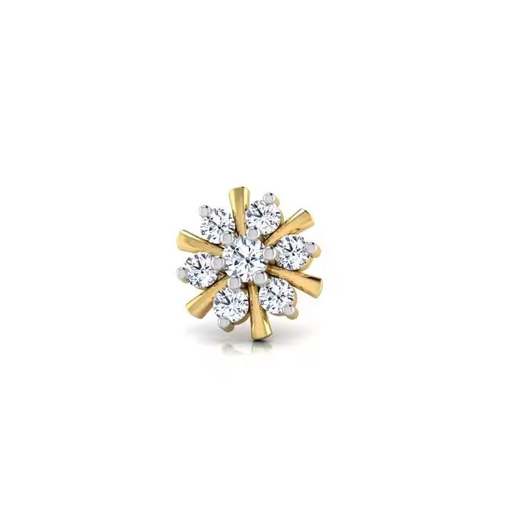 Lab grown Diamond nose pin crafted in 14kt yellow gold stylish and beautiful trending jewelry for women traditional design