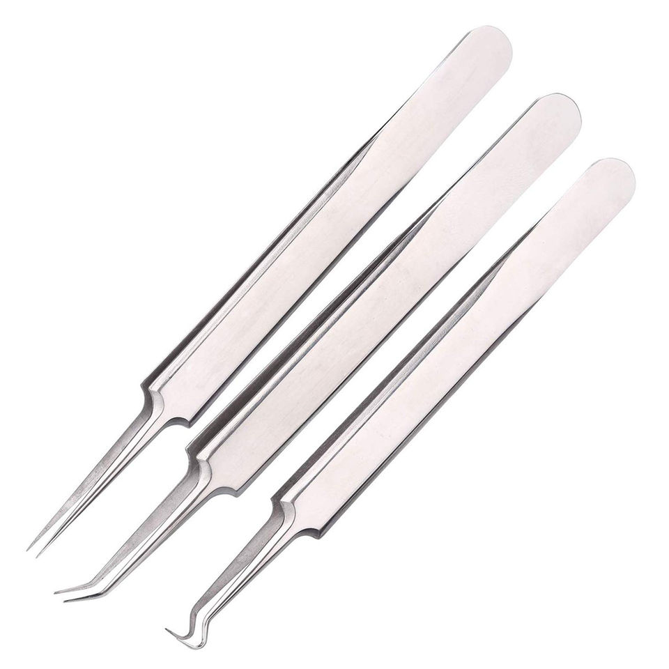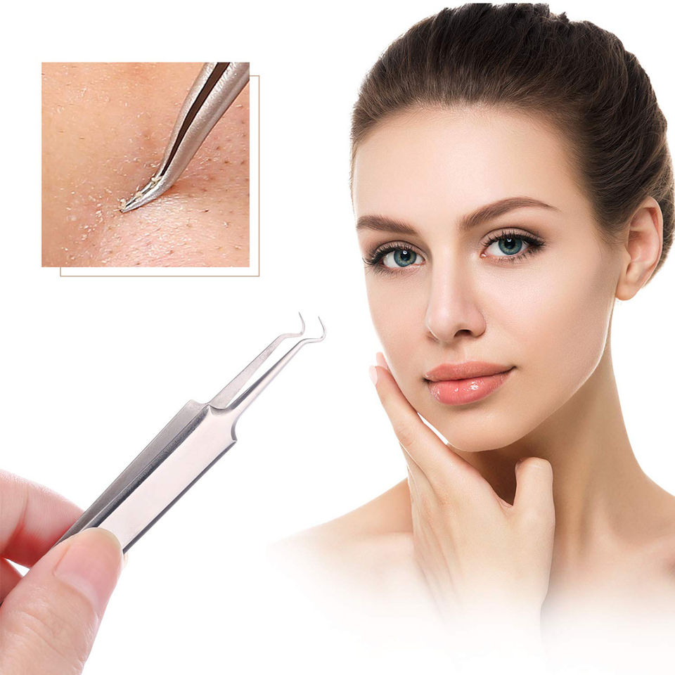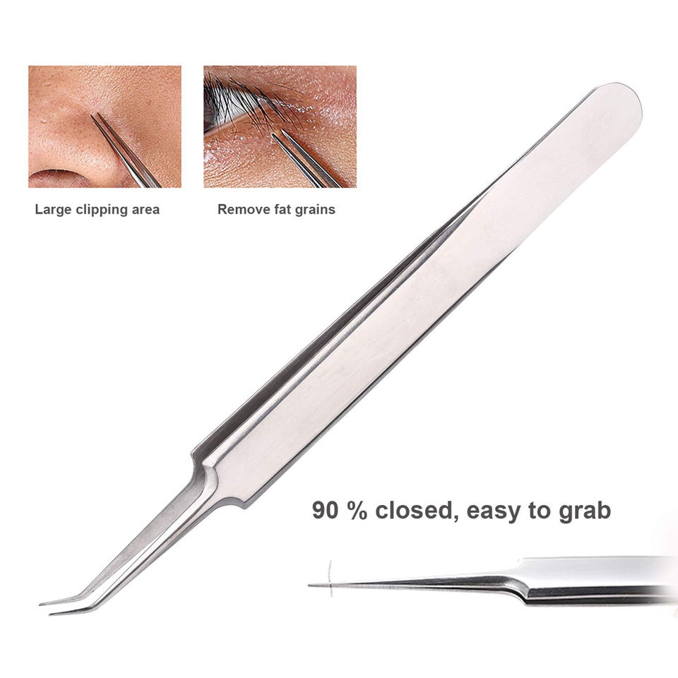 Laboratory Only Stainless Steel Eyelash Tweezers Cell Acne Clip and Acne Needle Popping Tool for Blackhead Removal