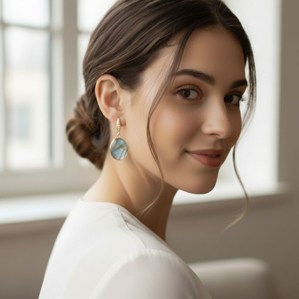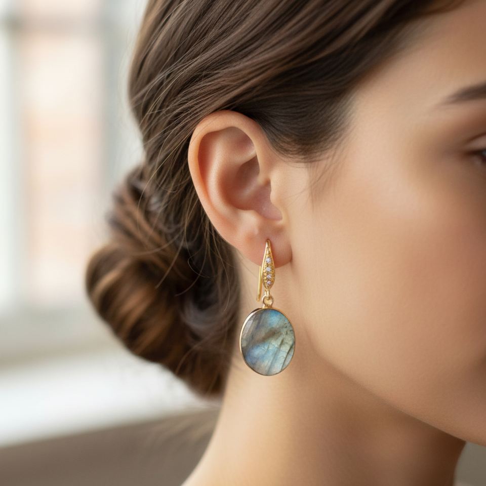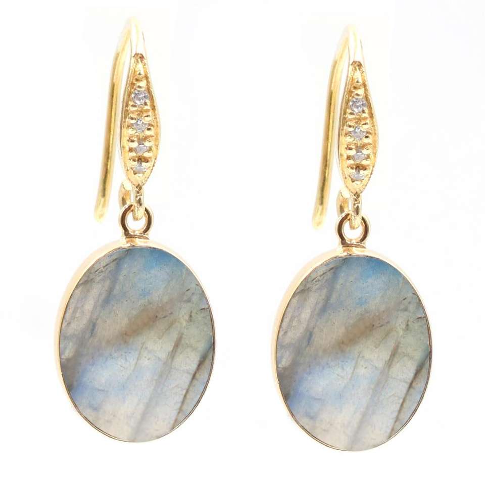 Product Name:Labradorite Oval Shape Silver Bezel Gold Plated Earring