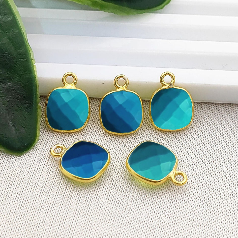 Labradorite 8mm Cushion Charms 925 Sterling Silver Bezel Set Pendant Gold Plated Blue Labradorite Charms Jewelry Making Charms
