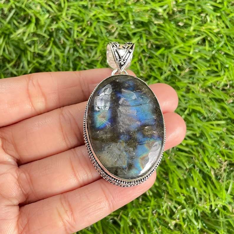 Labradorite 925 Sterling Silver Fashion Pendant Handmade Oval Gemstone Necklace Jewelry for Women IGI Certified Wholesale Gift