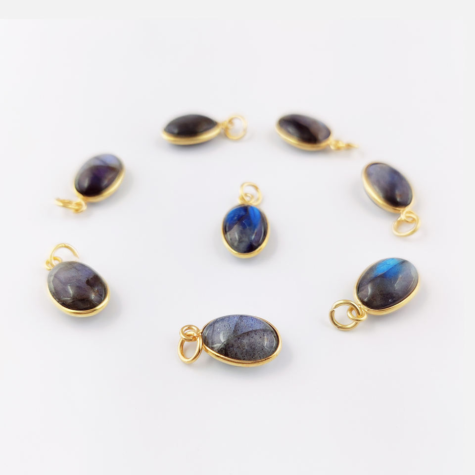 Handmade 12x8mm Oval Shape Labradorite Bezel Pendant 18K Gold Vermeil & Rhodium Plated 925 Sterling Silver Charm