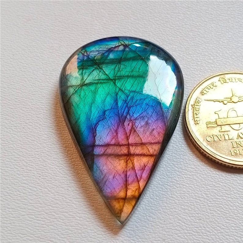 Labradorite Black Rainbow Plain Natural Gemstone Cabochon Loose Pendant Size Pear Shape Natural Good Quality