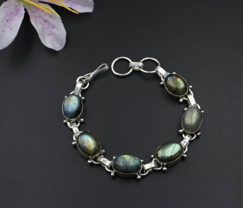 Labradorite Bracelet Adjustable Handmade Gemstone Jewelry Natural Birthstone Bracelet Unique Gift For Women Men