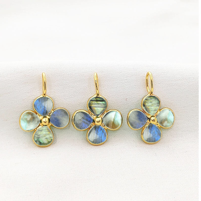 Labradorite Clover Shape Pendant 5mm Smooth Clover Bezel Handmade Labradorite Charm 7x5mm Loop Gold Plated Labradorite Charm