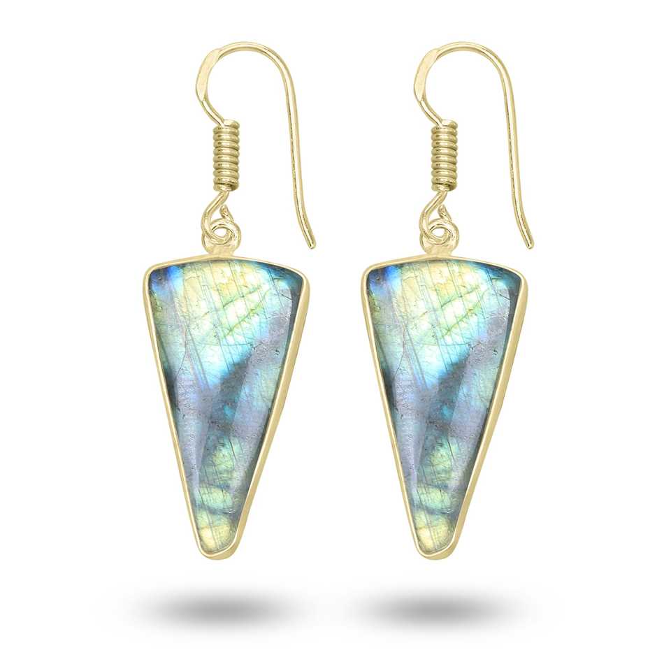 Labradorite Earring Simple Fashion Exquisite Temperament Design Advanced Sense Popular Handmade Jewelry 18k Gold plated brass