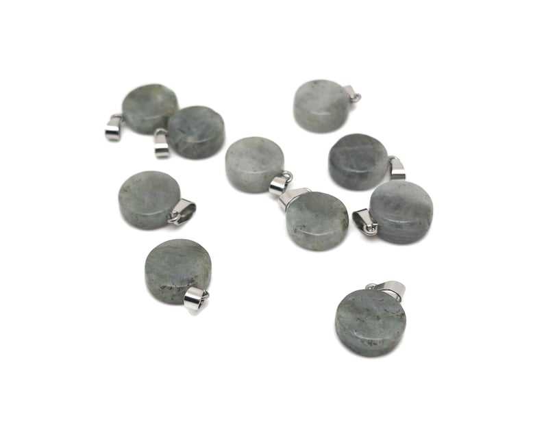 Labradorite Flat Round Pendant Cabochon Loose Crystal Coin Handmade Gemstone 925 Sterling Silver Jewelry Making