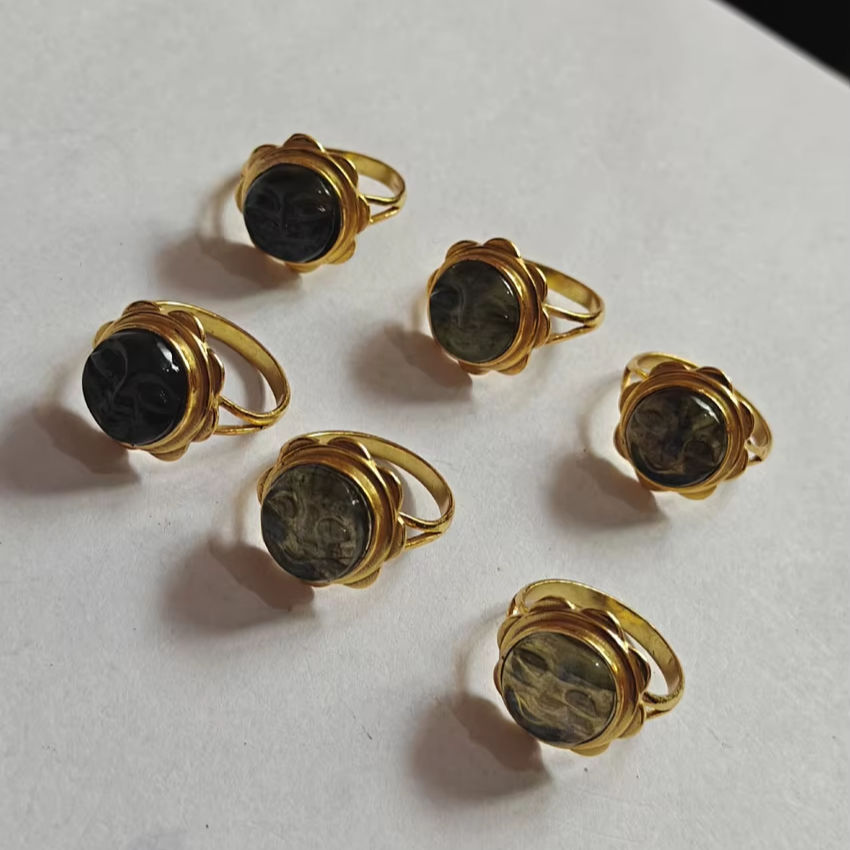Labradorite Gemstone 10mm Round Shape Bezel Set Full Moon face Ring Handmade Sterling Silver Gold Plated Jewelry for Party Wear