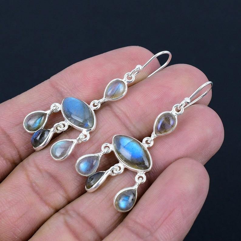 Labradorite Gemstone Earrings Jewelry For Women Silver Boho Style Jewelry 925 Sterling Silver Trending Handmade Earrings Gift