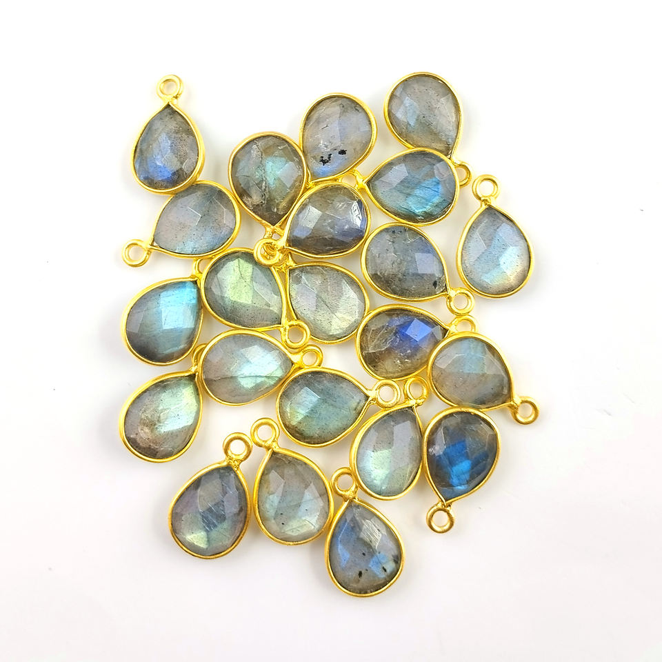 Labradorite Gemstone Pendant Sterling Silver Pear Shape Bezel Charm for Jewelry Making Handcrafted in India