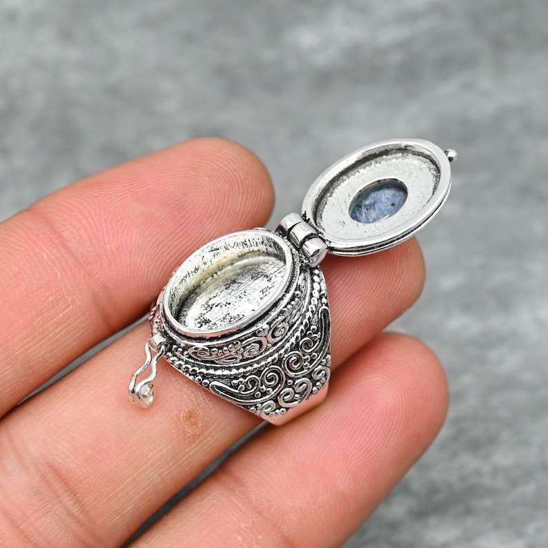 Labradorite Gemstone Pill Box Adjustable Ring Handmade 925 Sterling Silver Secret Message Jewelry