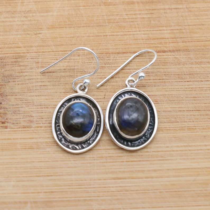Labradorite Gold Plated Sterling Silver Drop Earrings Handmade Gemstone Jewelry for Women-Wedding & Party Elegant Gift