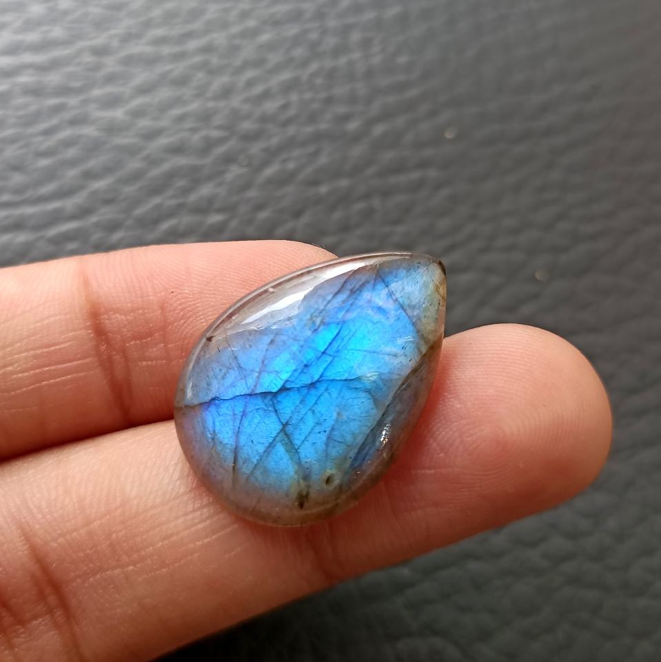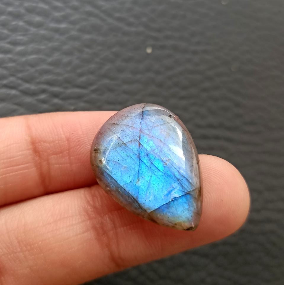 Labradorite Natural Gemstone Cabochon Black Rainbow Optical Effects Full Flashy Fire Loose Pear Shape Pendant Color Change