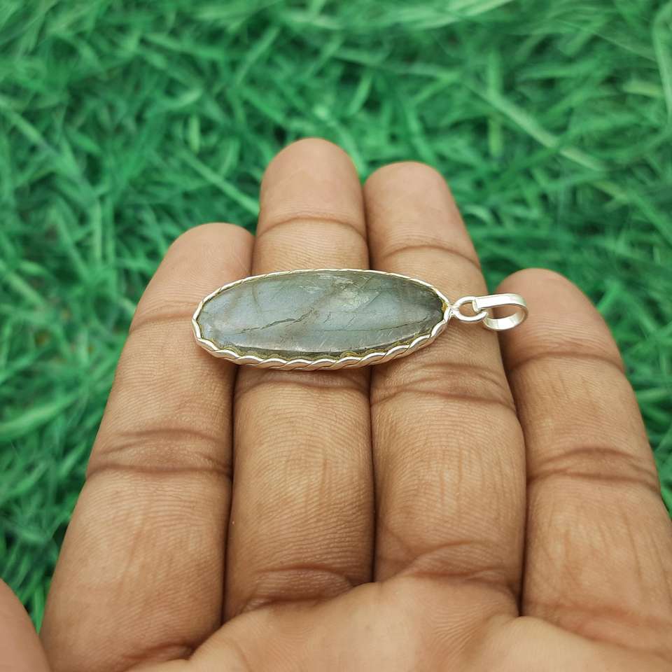 Labradorite Natural Gemstone Pendant Handmade 925 Sterling Silver Simple Design Oval Pendant Gift for Her Fine Jewelry