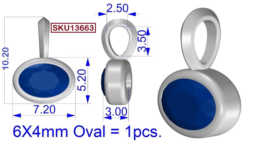 Pendant Length:L- 10 MM With Bail, W-7 MM, H- 3 MM