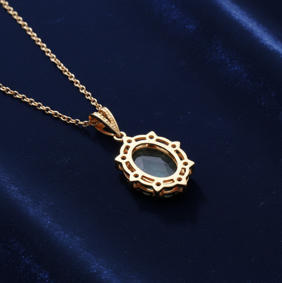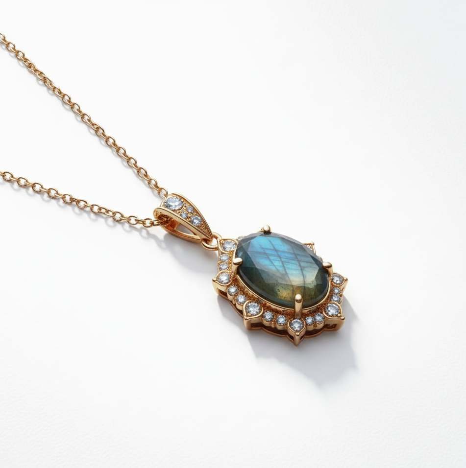 Labradorite Pendant Necklace 16 Inch 10g with CZ, 925 Sterling Silver, 18K Gold Plated Necklace Fine Jewellery Gift for Women
