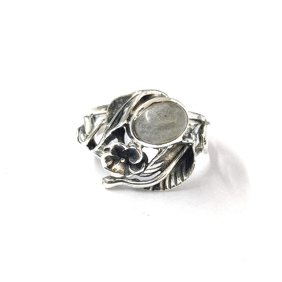 Labradorite Ring (5.2 Grams) Intricately Designed Flower Pattern Elegant and Durable Jewelry