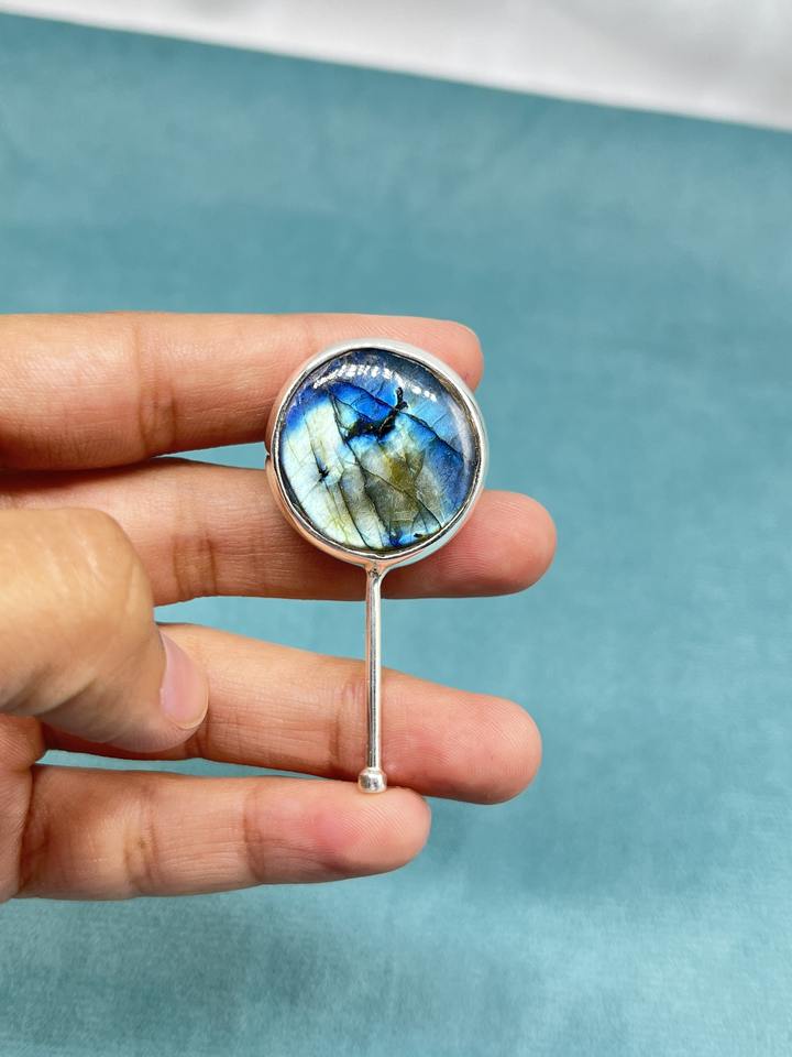 Handmade 925 Silver Fine Brooches Men's Women's Celtic Shawl Labratronite Diamond Stone Wedding Gift Labratronite Brooches