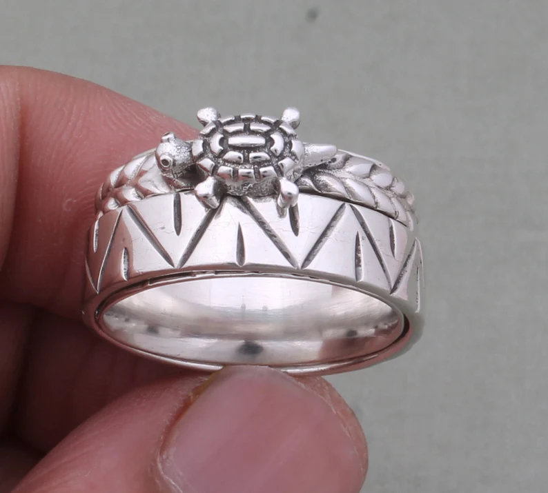 Labradorite Sterling Silver Spinner Ring For Women Handmade Silver Oval Stone Two Tone Meditation Fidget Anxiety Ring Gift