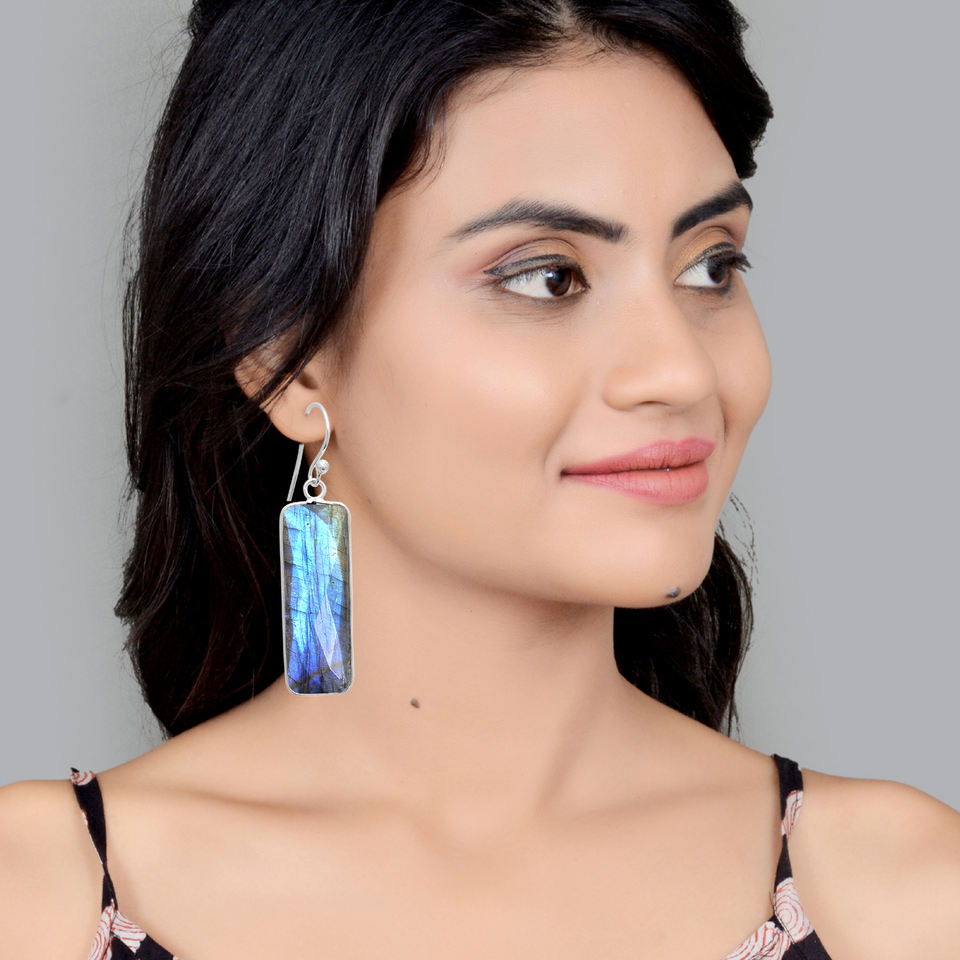 Labradorite silver handmade earrings, 925 sterling silver gemstone bezel earrings, 2022 modern dangle earrings jewelry