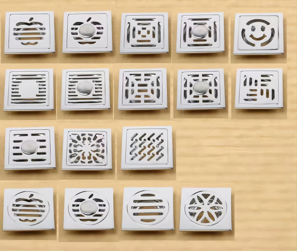 Anti Odor Square Floor Drain Tile Insert Grate Cover Strainer Brushed Bathroom Shower Drain Brass Floor Waste Drain