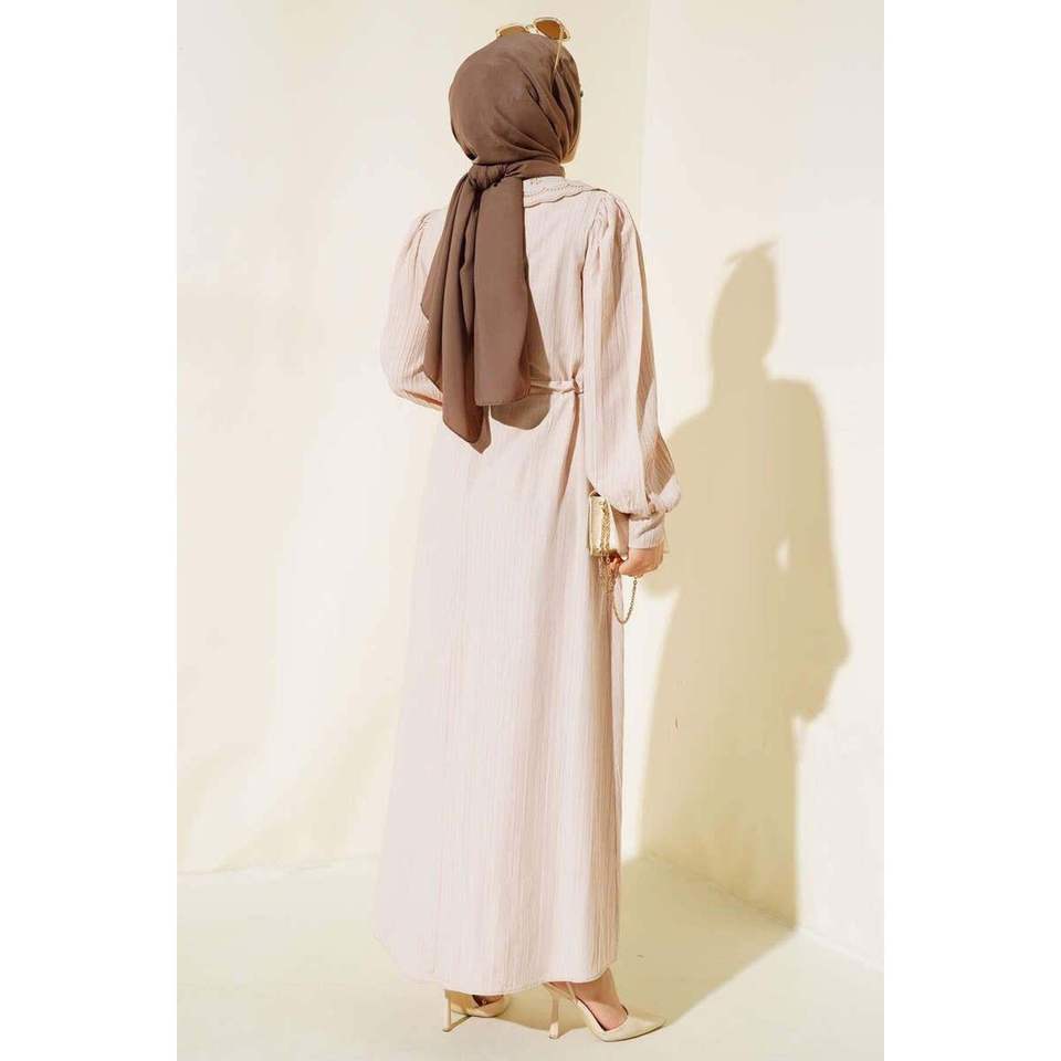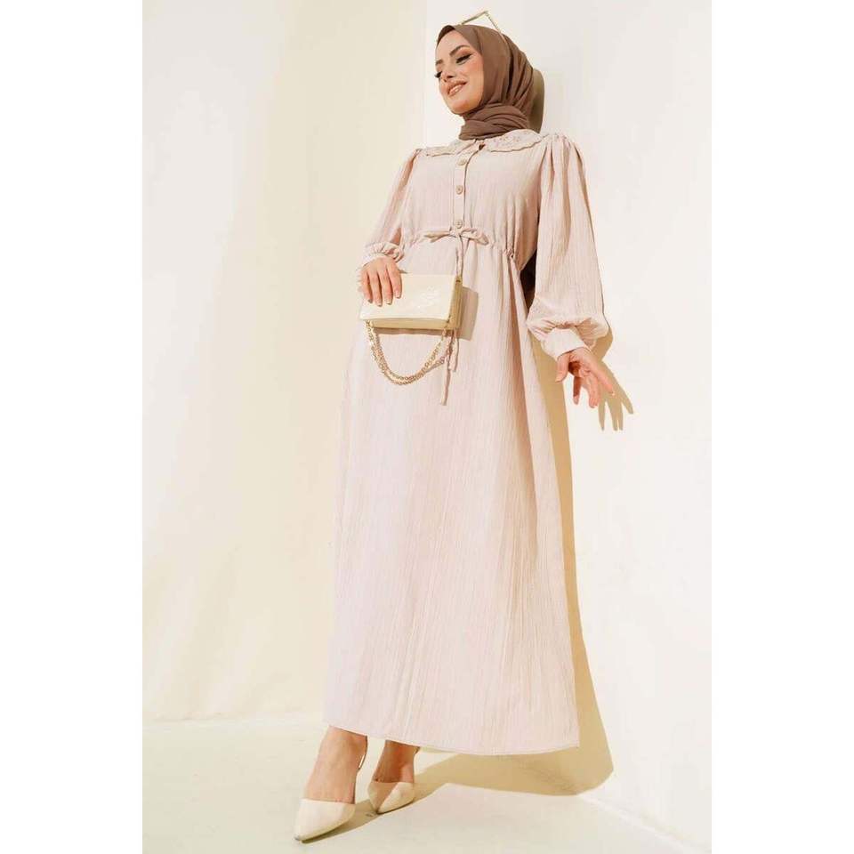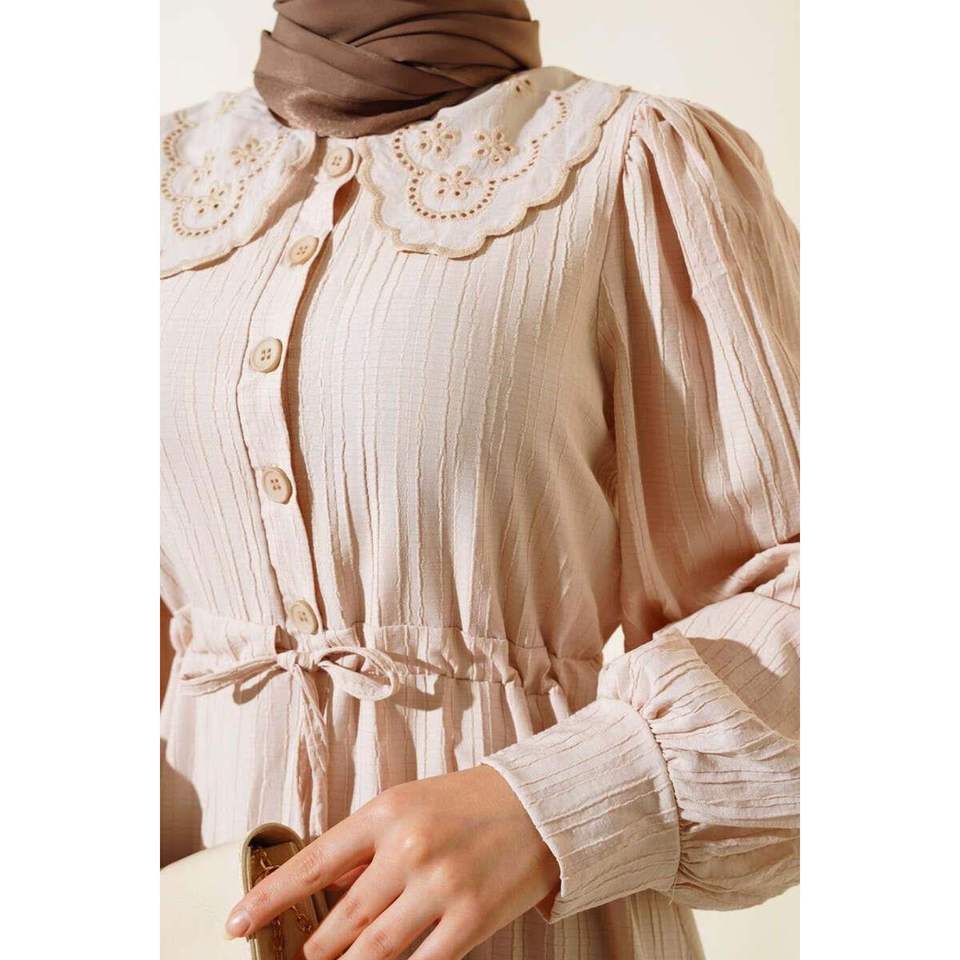 Lace Collar Waist Tunnel Dress Beige