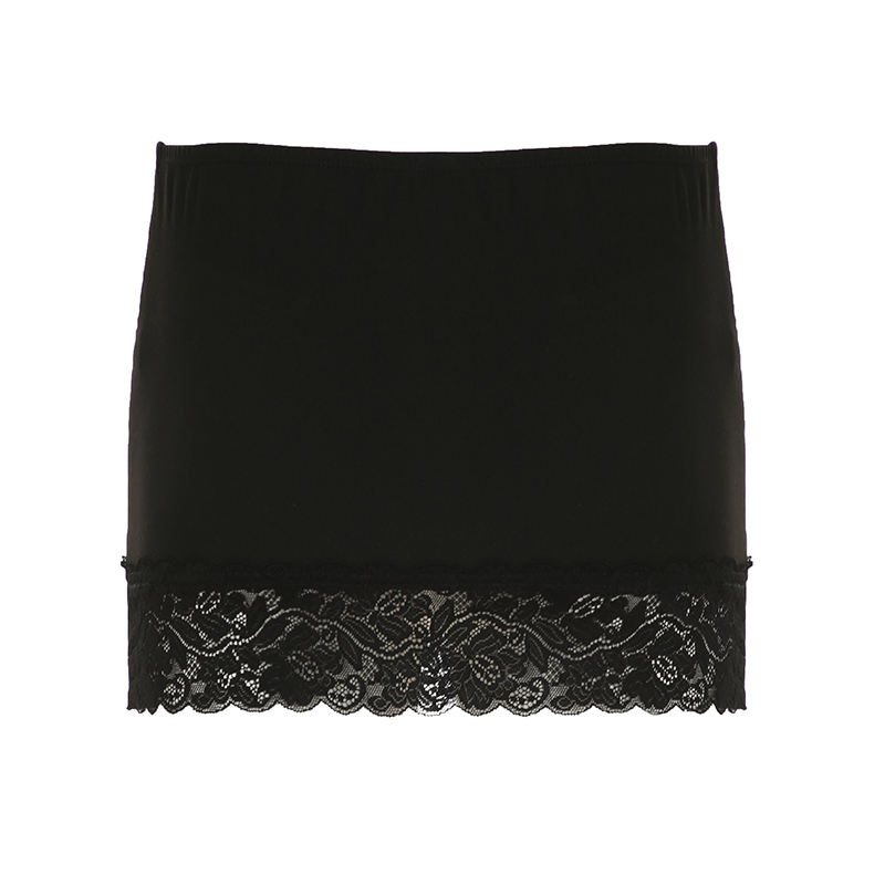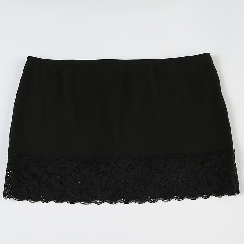Vintage Lace Hem Slip Skirt Women's Mini Pencil Skirt Natural Waistline Solid Lining Sheer Bottom Trim Anti-See Slim Fit