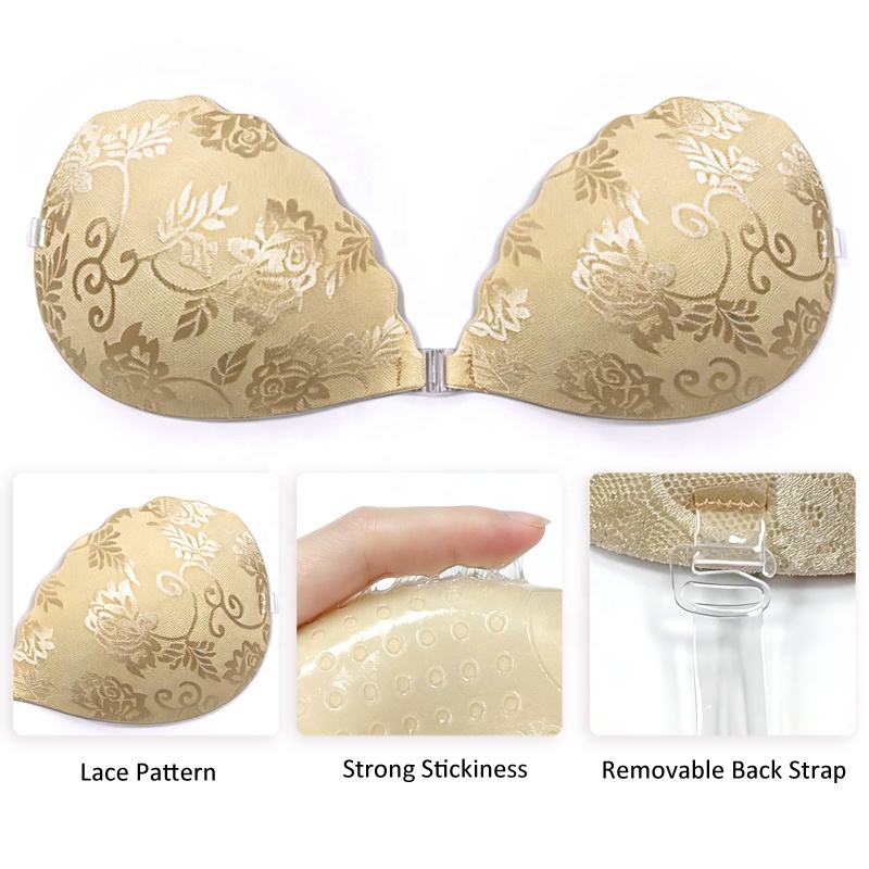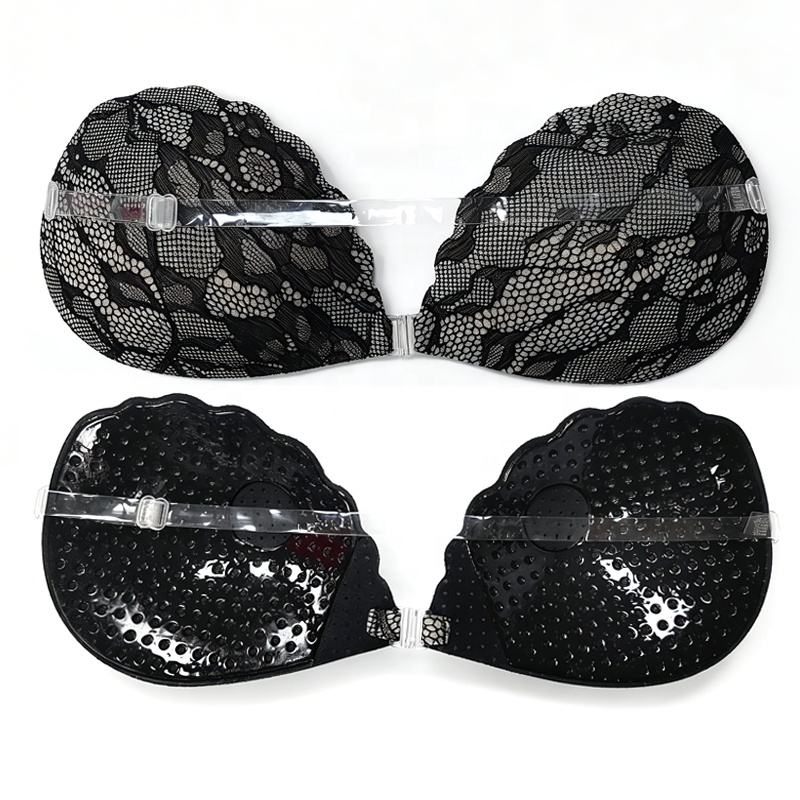 Lace Shell Shape Sticky Bra Strapless Self Adhesive Push up Bra with Removable Clear Strap