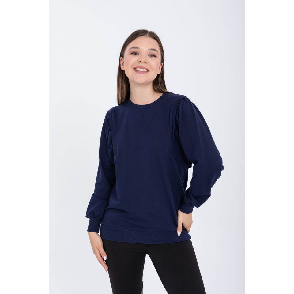 Lacivert Casual Sweat Bisiklet Yaka Uzun Kollu Kadın Winter & Autumn Printed Fabric Knitted with Front Logo