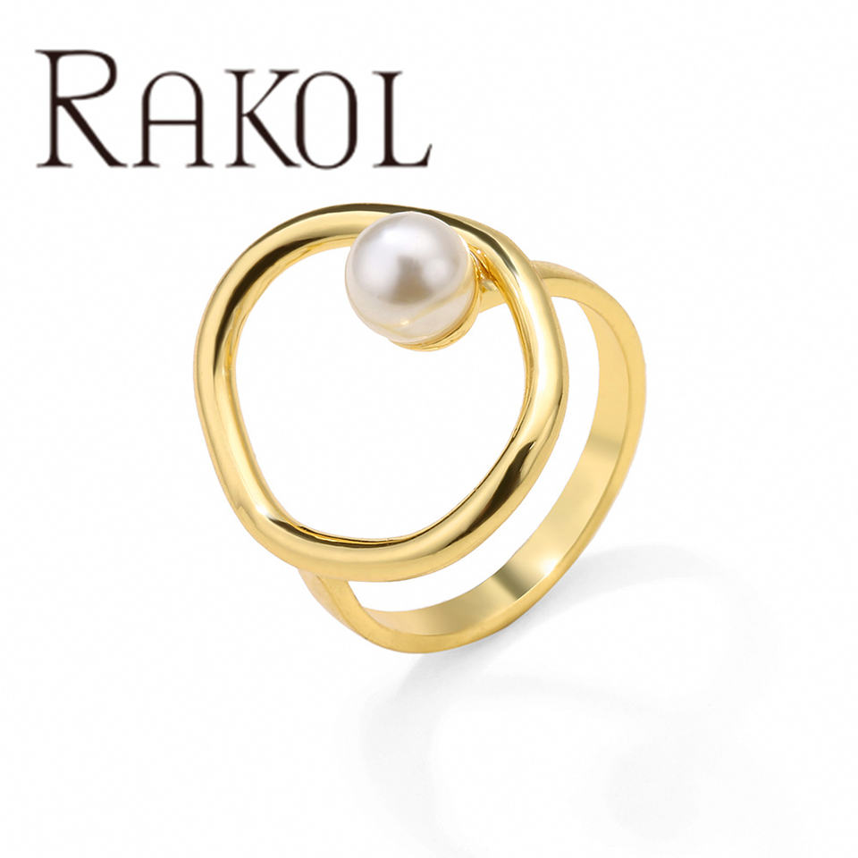 Lacole RP2174 Fashion Gold-Plated Sterling Silver Oval Adjustable Pearl Ring, Suitable for Women in 2024