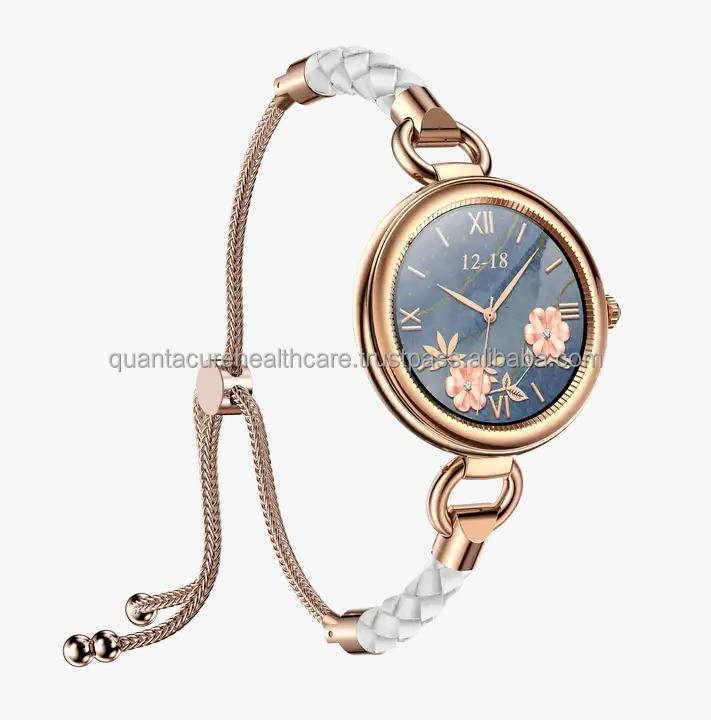 Ladies 1.09 Inch IPS Screen Smartwatch Fitness Monitor Heart Rate Sleep Tracker Calendar Magnetic Charging Leather Band Alloy