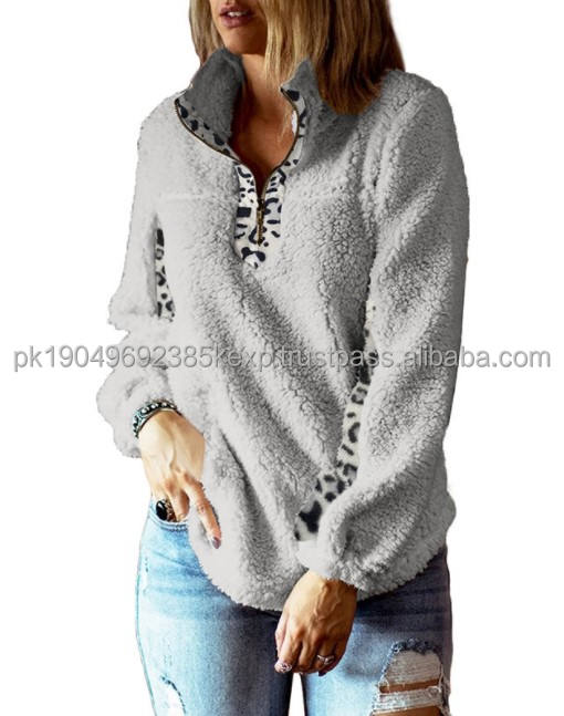 Ladies 14 Sweatshirt Winter Leopard Casual Quarter Zipper Women Fluffy Fleece Sherpa Pullover