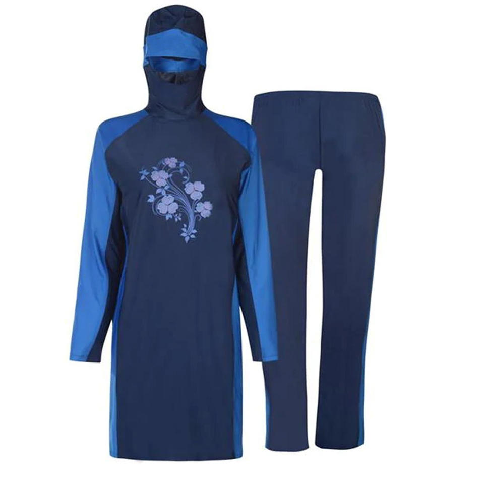 Modest Striped 2-Piece Waterproof Swimwear for Islamic Women Polyester/Nylon Material Plus Size Beachwear Swim Set