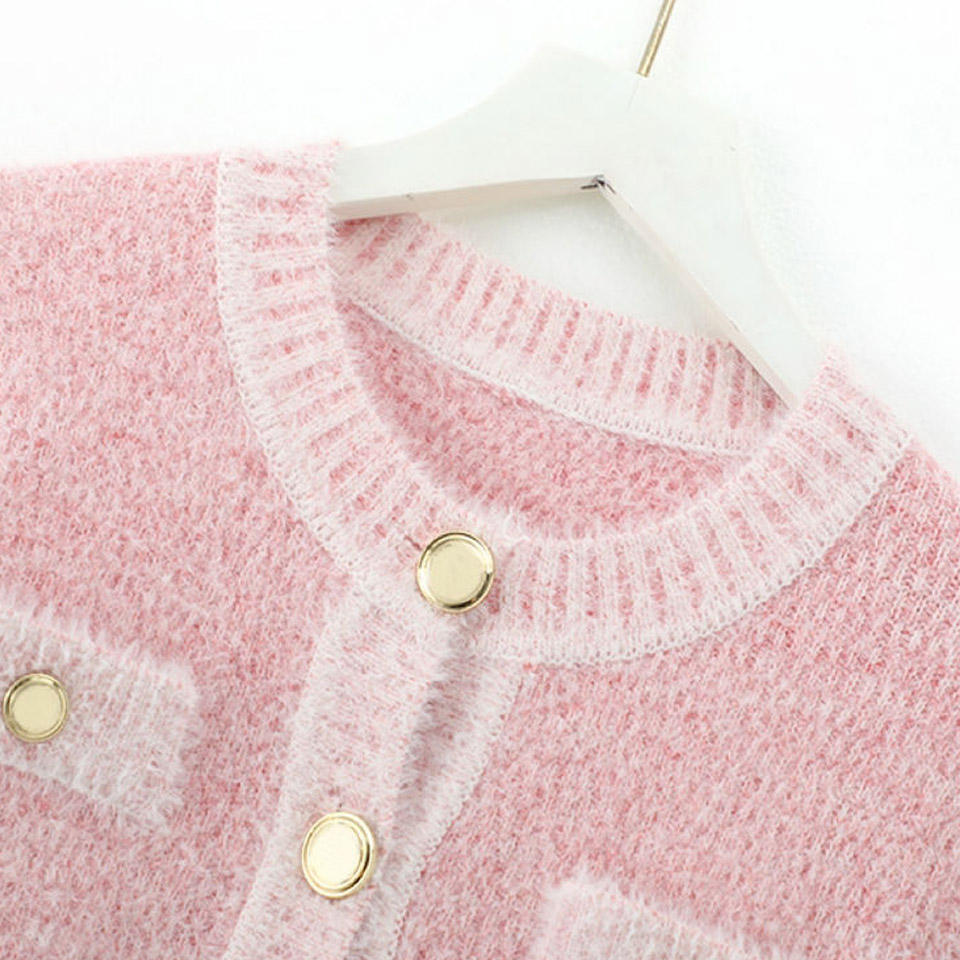 Ladies Autumn Casual Short Cardigan Sweater-60/40 Cotton/Nylon Long Sleeve 8-Button Placket Custom Logo