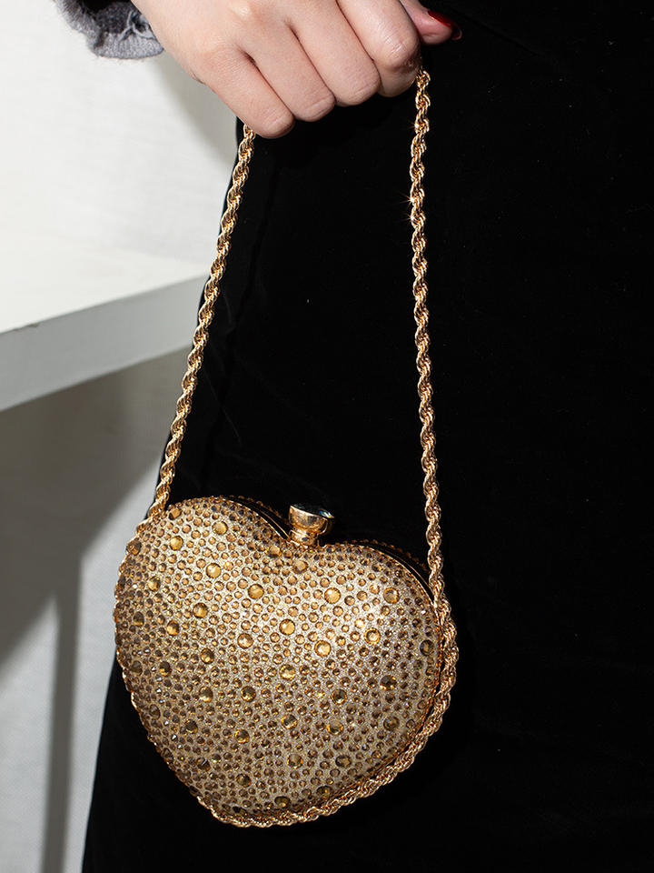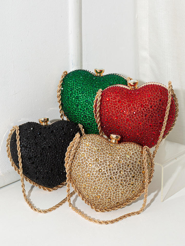 Ladies Bag African Heart Shaped Handbags Rhinestone Diamond Crystal Women Evening Bag Wedding Bridal Gala Banquet Purse