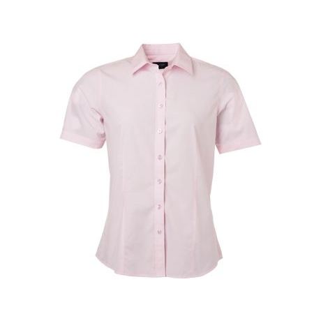 Ladies' Classic Satin Shirt Top in XL Easy-Care Cotton with Embroidered Logo/Pattern Women's Micro-Twill Shortsleeve Tops