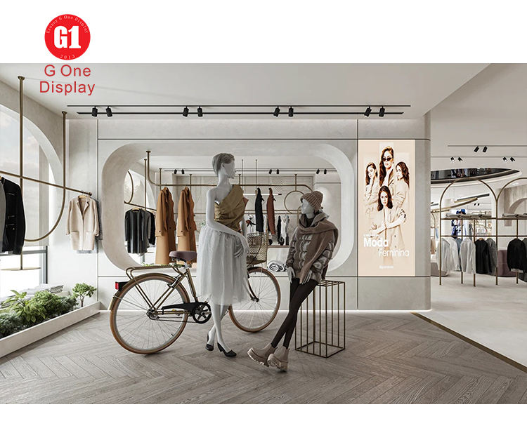 Ladies Clothing Shop Interior Design Custom Clothes Store Showcase Retail Garment Display Rack Custom Metal Hanging Shelves