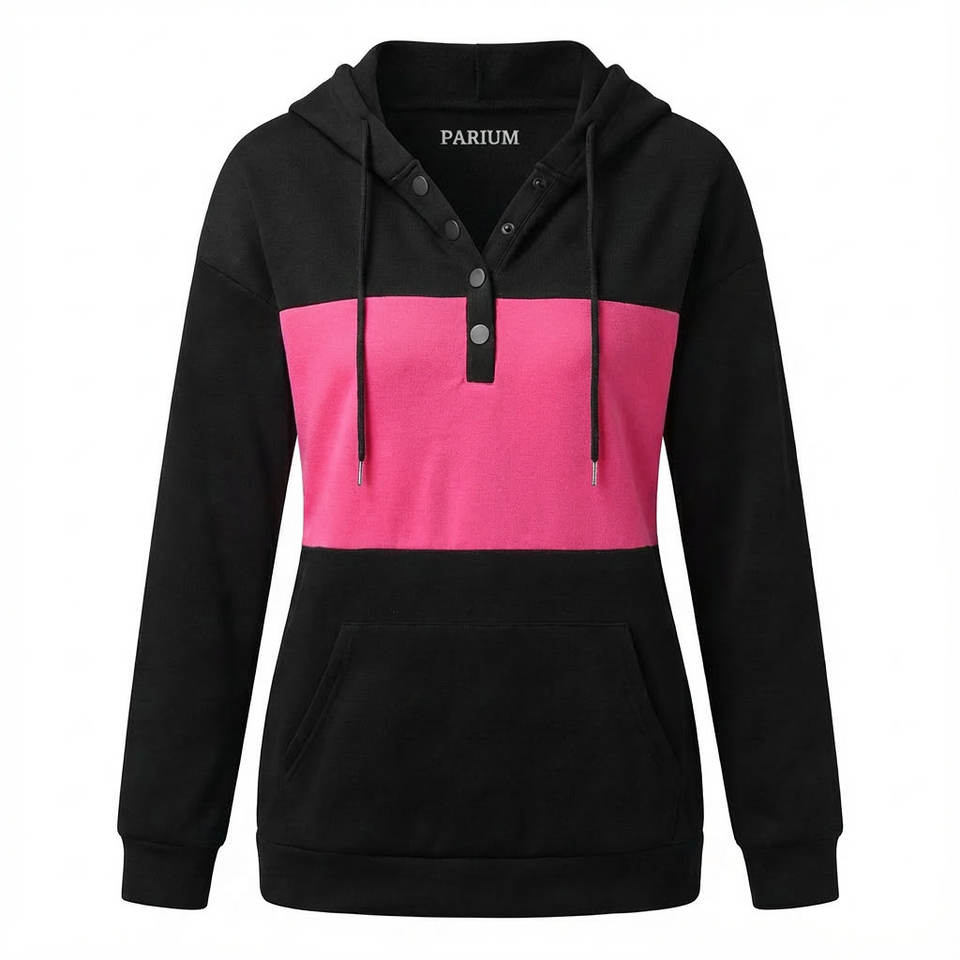 Ladies Custom Made Hoodies Henley Neck Button Pullover Kangaroo Pocket Long Sleeve Loose Fit All Season Wholesale Price Hoodies