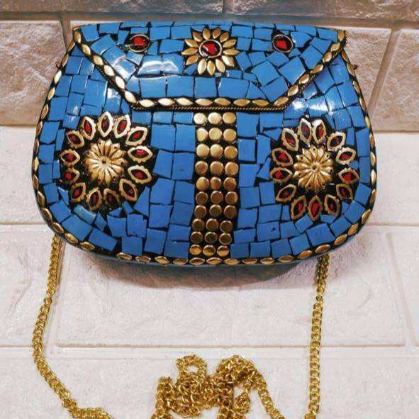 Ladies Evening Clutch Bags Mosaic Clutch Mosaic Bag Indian Bag Multicolor Modern Polished Sculpture Style Metal Crafts