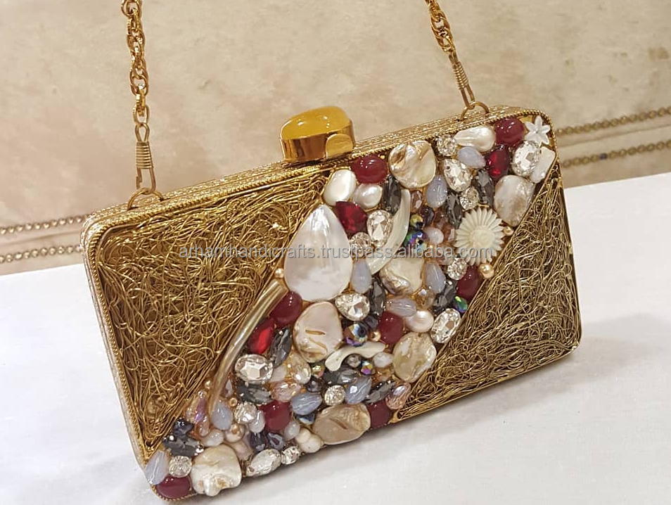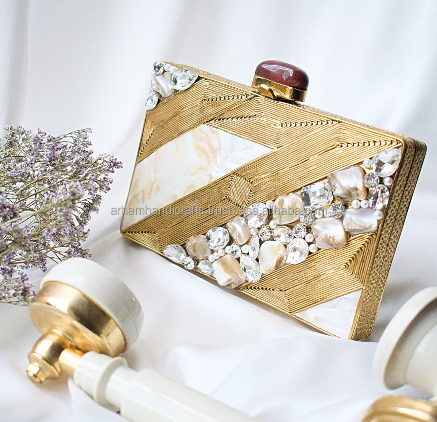 Ladies Evening Clutch Bags Mother of Pearl Metal Clutch Bag for Women Best Evening Hand Bag at LOW PRICE by LUXURY CRAFTS