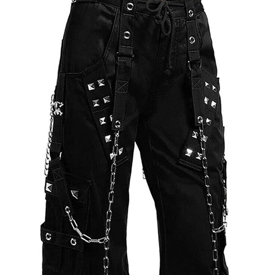 Ladies Fashion Gothic Dark Cuff Black Trouser Chain Pants High Quality 2026