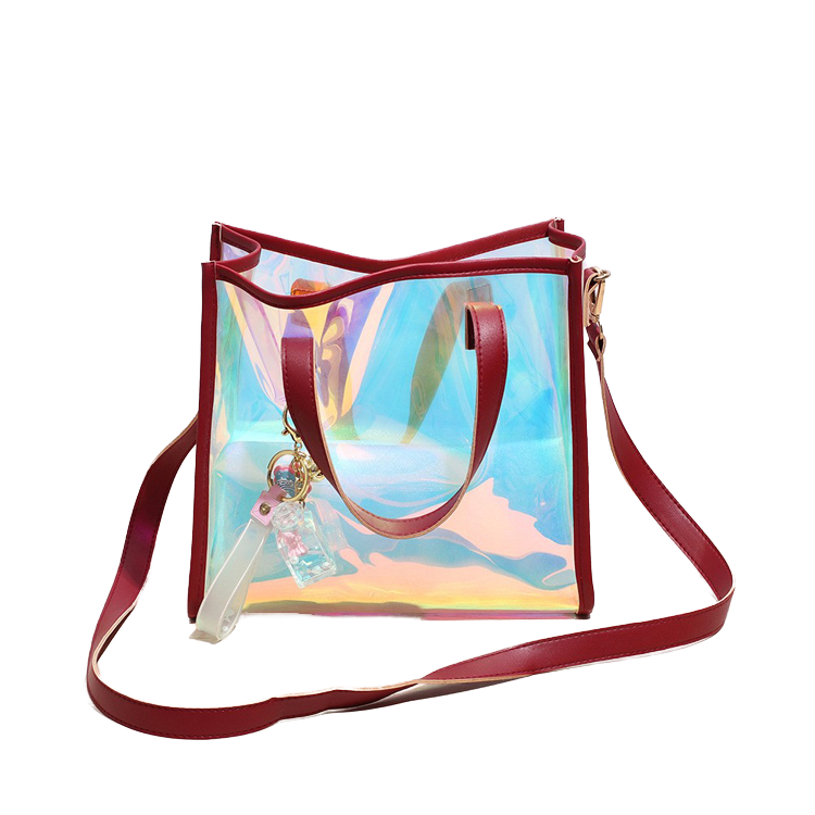 Ladies Fashion Holographic PVC Custom Waterproof Eco-Friendly Crossbody Tote Shoulder Handbag Open Style Iridescent