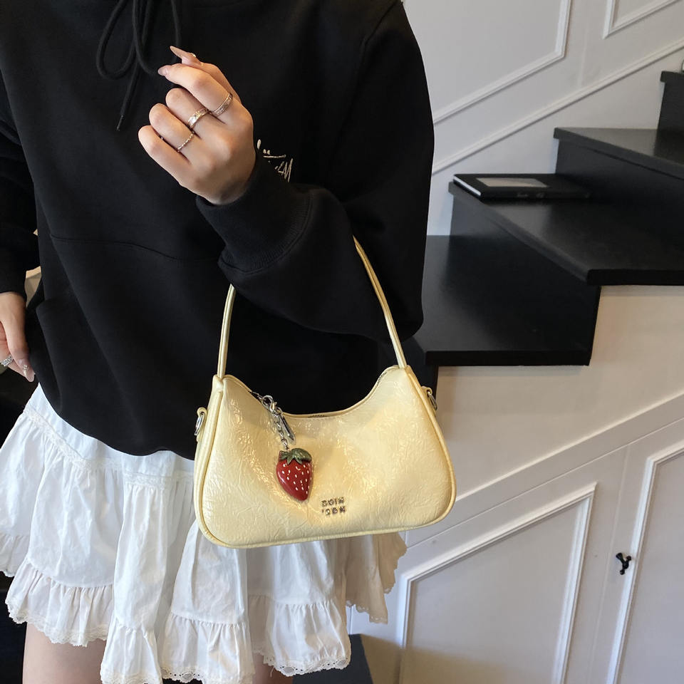 Ladies Fashion Minimalist Zipper Handbags Women Underarm Dumplings Armpit Bags With Strawberry Pendant