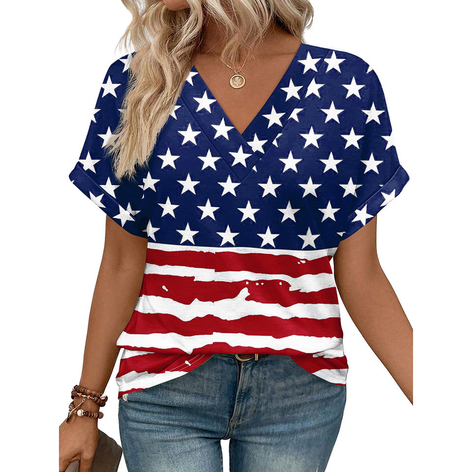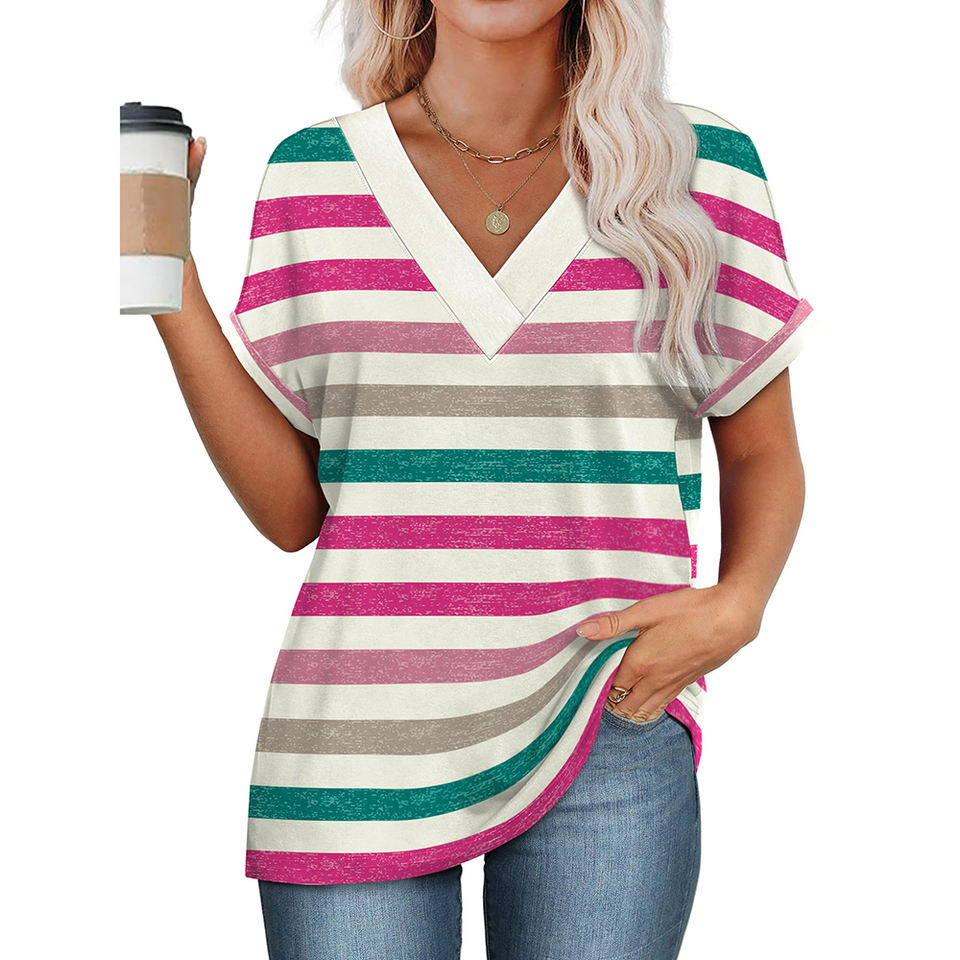 Ladies Fashion V Neck Tees Tshirt Casual Loose Fit T-Shirt Womens Oversized Striped T-shirt for men DDP Shipping