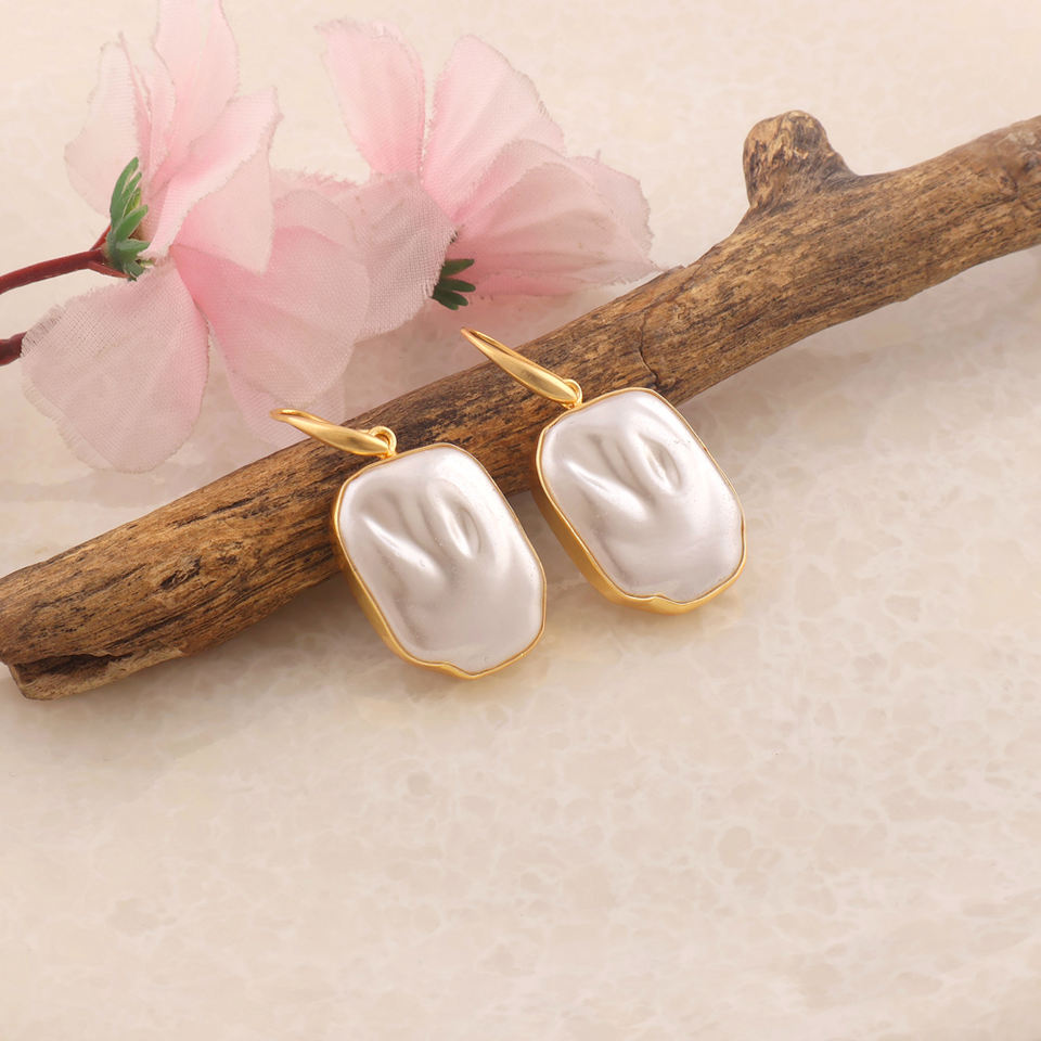 Ladies Fashionable Earrings Irregular White Korean Pearl Designer Hook Earring Brass Gold Plated Geometric Style Dangle Drops